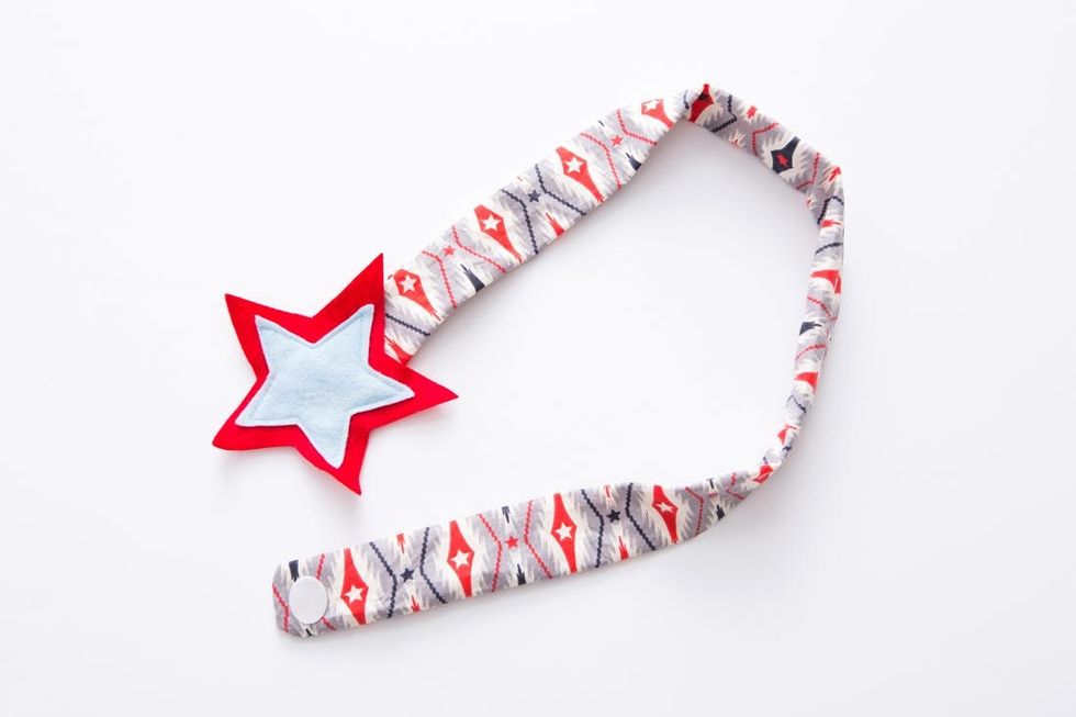 4. Sew the star on top of the open end of the belt. Then sew the smaller star on top of the bigger star.