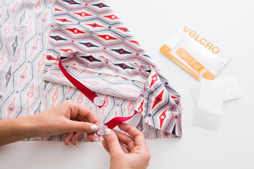 4. Cut a piece of ribbon, feed it through the seam and attach VELCRO® Brand Sticky Back for Fabric to the ends.