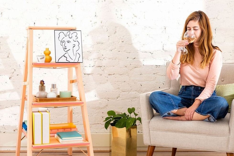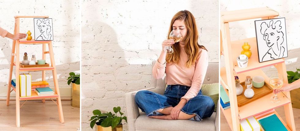 You know that empty nook you have no idea what to do with? Well, we have a DIY to fix that. This adorable ladder shelf doesn't cut any corners: It functions as a decor accent, storage, and color statement all in one. Plus, it can be decked out with the items you love that are lookin' for a home (think candles, succulents, and those clutch travel trinkets). Bottom line: It's pretty *and* functional — need we say more? Keep scrolling through to see how to get it done.