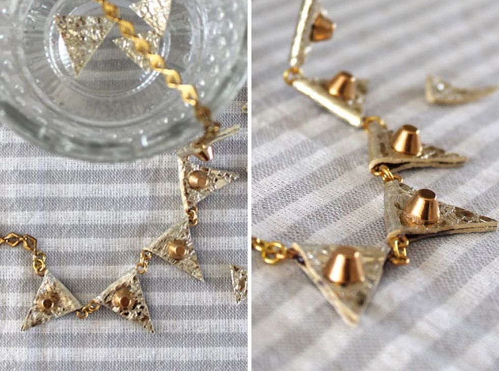 7. Geometric Pendant Necklaces: Turn your leather scraps into pretty geometric necklaces that definitely make a statement. (via Brit + Co.)