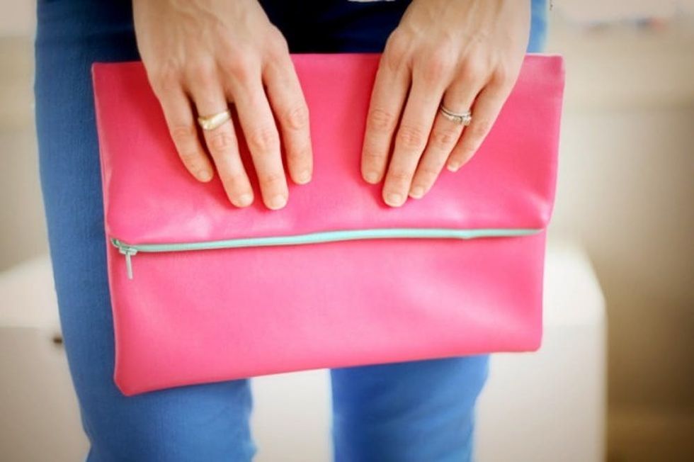 20. Fold Over Clutch: The aqua zipper against the pink leather makes this the perfect clutch for any color blocking lover… so count us in! (via Say Yes to Hoboken)