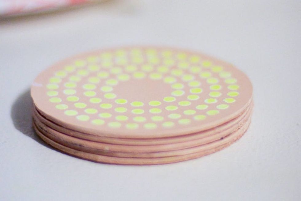 26. Neon and Neutral Coasters: Tackle the neon trend in your home and keep things simple with these neon polka-dotted coasters. The neutral backdrop of the leather makes the neon really pop while still fitting in with the rest of your decor. (via Freshly Picked)