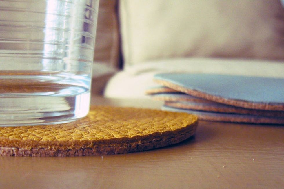 27. Leather and Cork Coasters: Another fun coaster DIY, the leather takes these cork coasters to the next level and adds a classy vibe to your coffee table. (via Freshly Given)