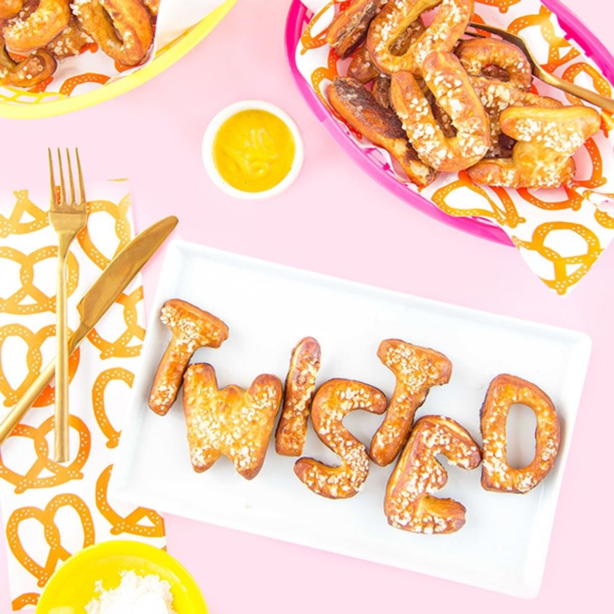 Did you guys know that April 26 is National Pretzel Day?! Well, if you weren’t caught up on your food holidays (National Taco Day, anyone?), we’ve got you covered with a fun twist on America’s favorite: the pretzel. And if you thought that there was nothing that could compare to a DIY pretzel bar, think again, because you’ll be twisted for these letter-shaped pretzels. Celebrate National Pretzel Day this year by saying it with pretzels!