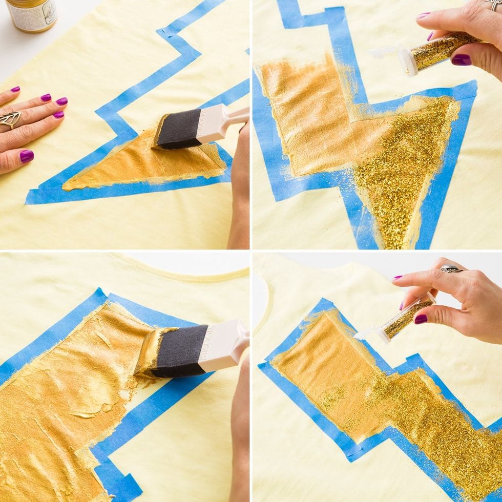 Fill in the lightning bolt with gold paint. Sprinkle on glitter intermittently while the paint is still wet.