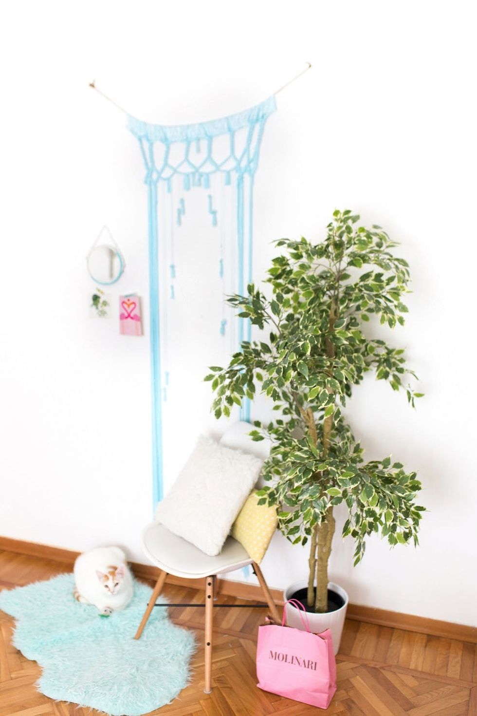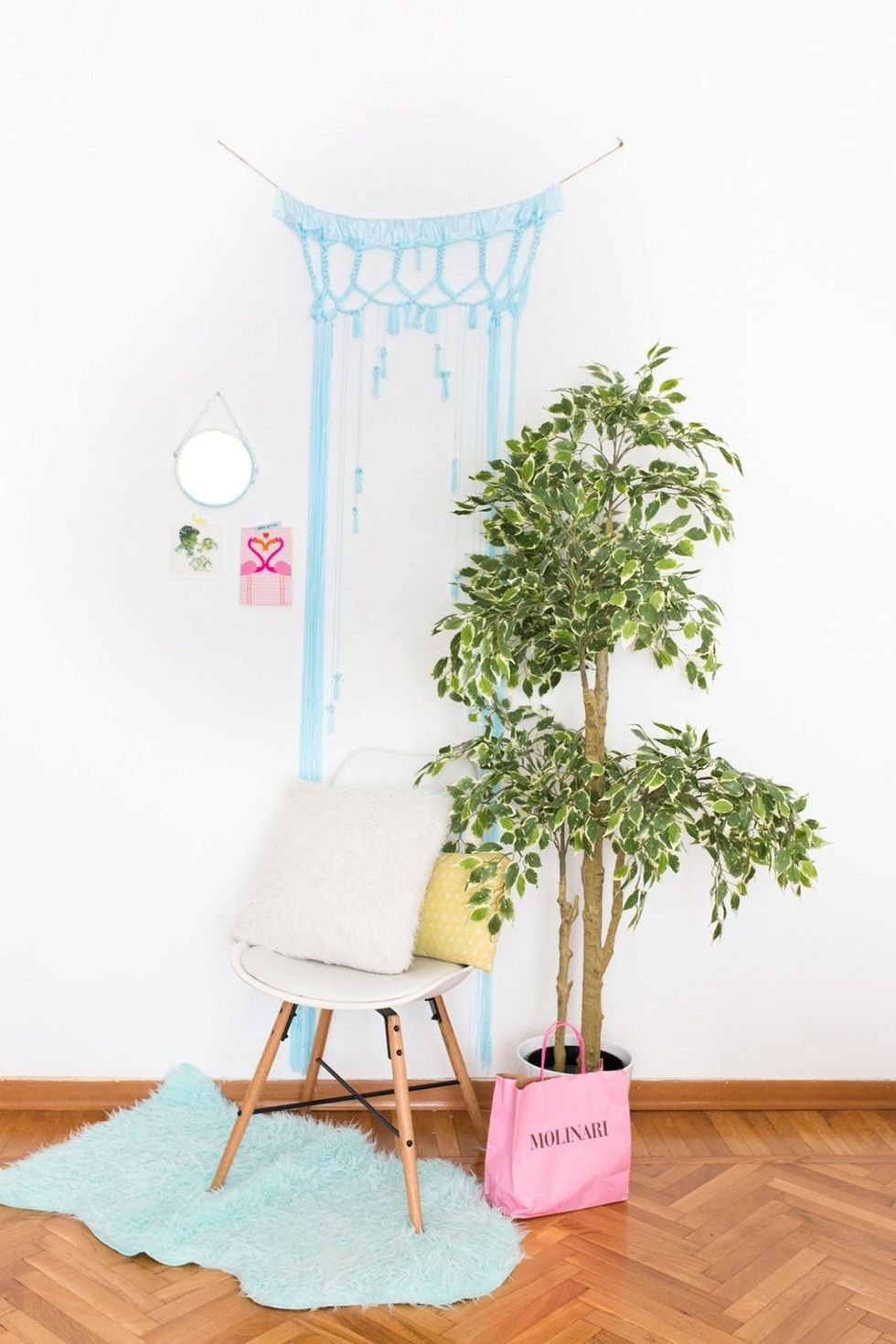 A little bit Scandinavian and a little bit boho, this tiny nook is a refreshingly colorful oasis.