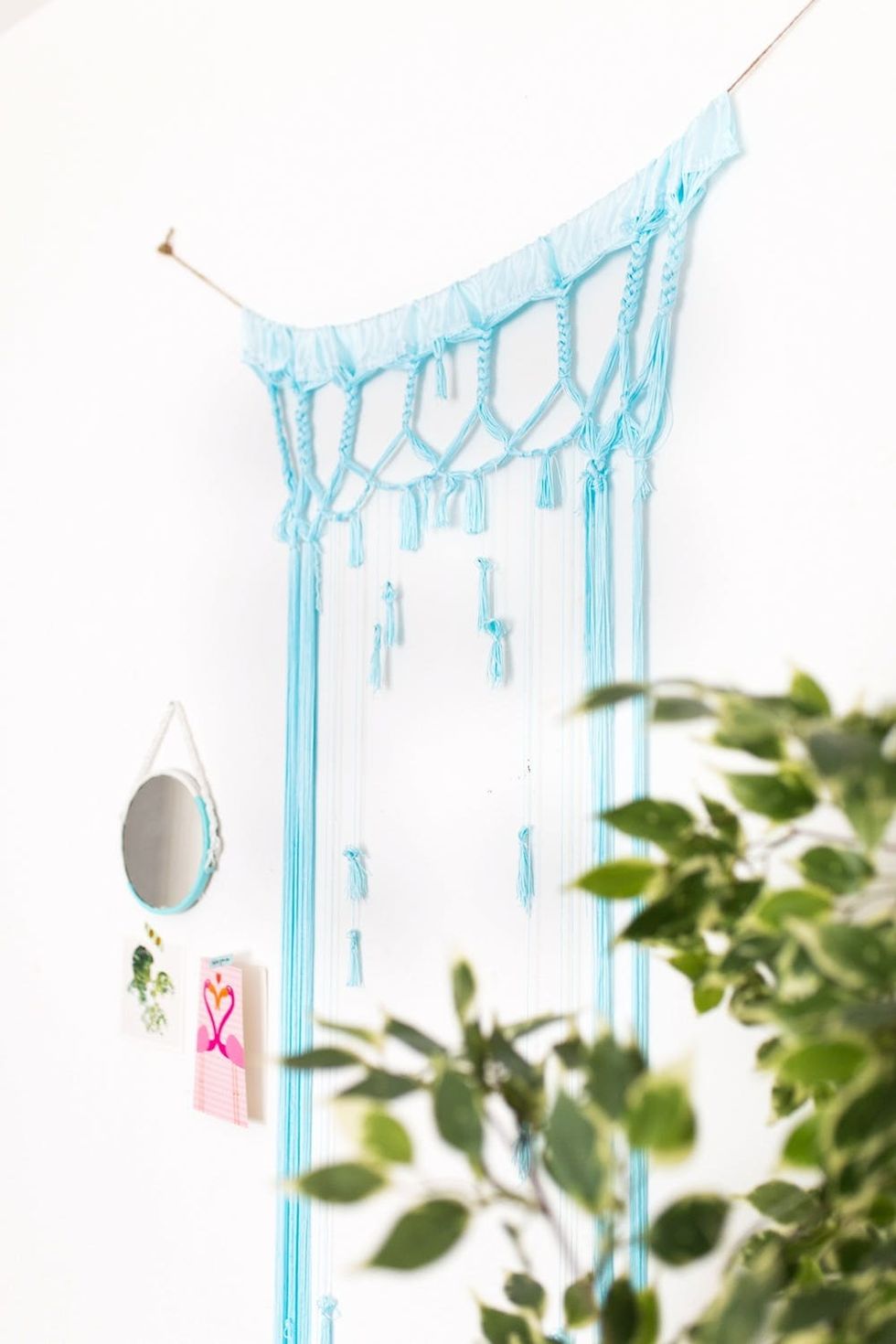 When dreaming about the perfect bohemian paradise and vacation-inspired living, we envision tall plants, faux fur throw pillows, and macrame wall hangings. So today, we’re showing you how to make your own Urban Outfitters-inspired Rhona Macrame Portal ($129) with tassels for a fraction of the price. What’s more — it takes less than 30 minutes (plus dyeing) to create! Read on for the tutorial.