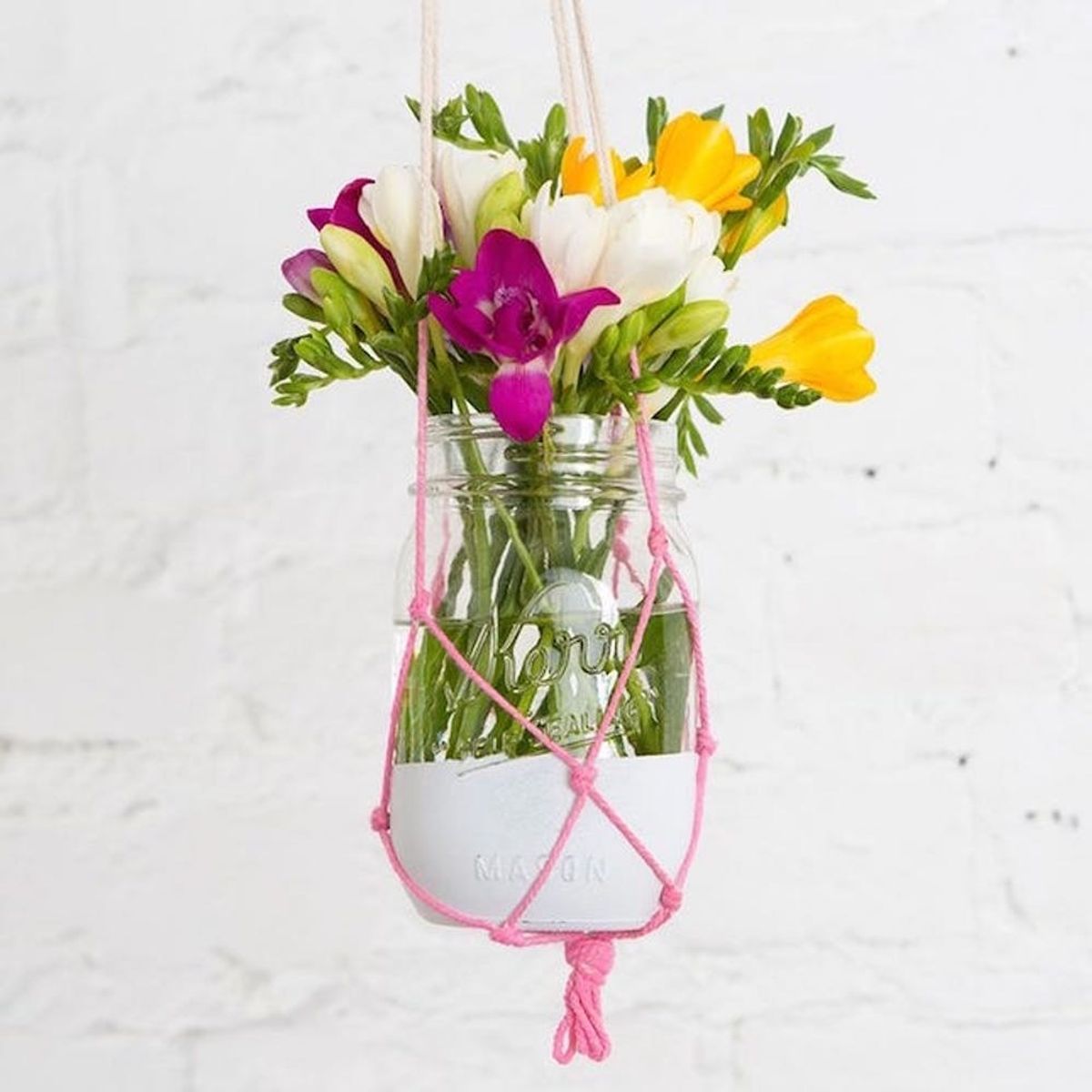 2. Hanging Macrame Vase: Show off the knots you learned back in Girl Scouts and string up this one-of-a-kind vase. (via Brit + Co)