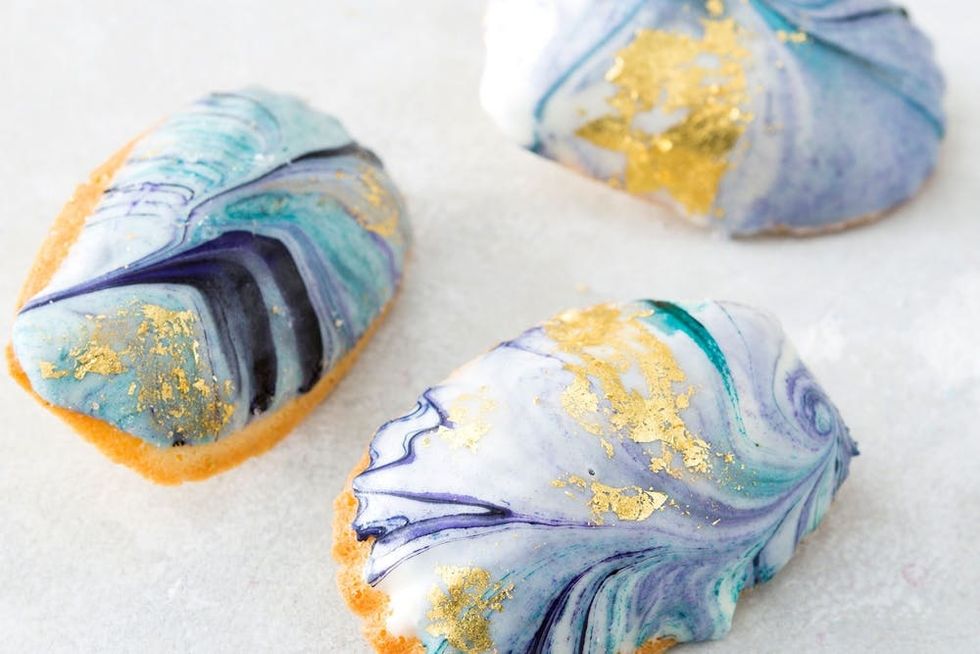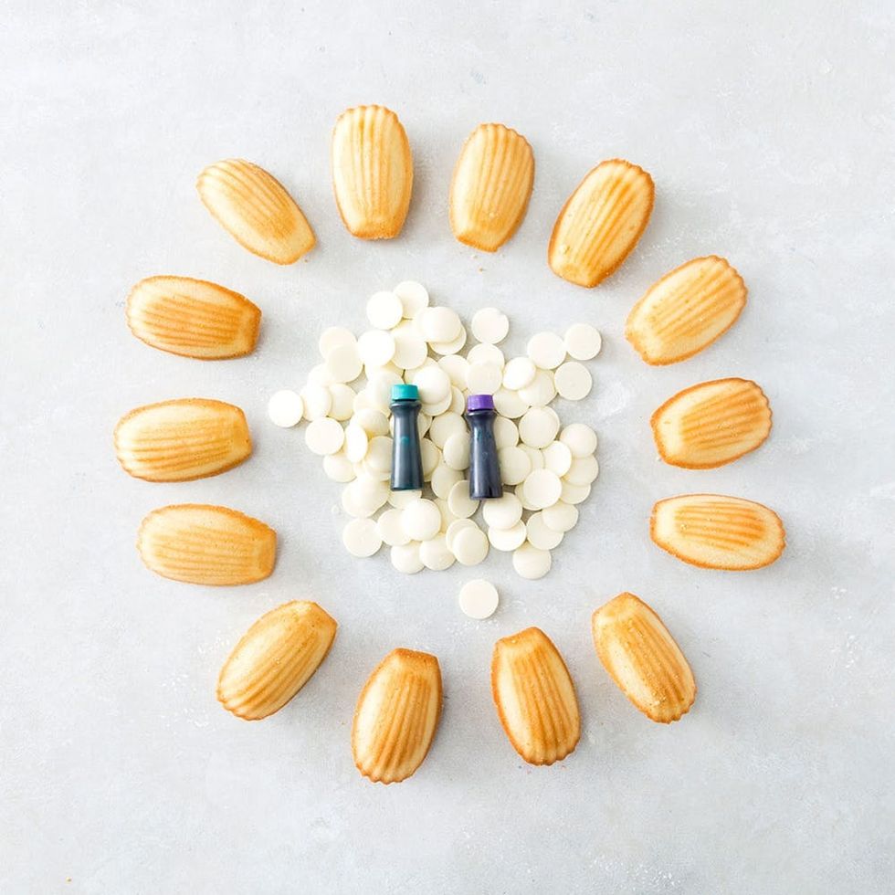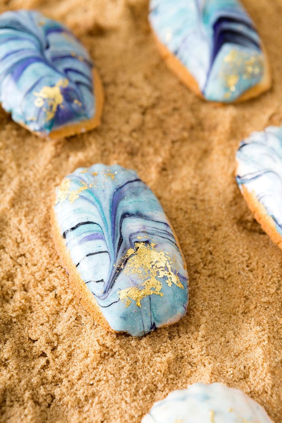 With multiple trips to the beach marked in our Google calendar, we’re finding ourselves becoming very obsessed with everything aquatic. The waves — and everything about the ocean — are so mesmerizing that I often find myself wishing I was a mermaid. Sun-kissed skin, beachy waves, and an opportunity to watch all the surfers — sign me up for my transformation ASAP. Sadly, I am not a mermaid, but still take inspiration from their lifestyle. Therefore I would like to introduce you to mermaid Madeleine cookies. This is hands down the most beautiful way to transform any cookie (store bought or fresh) and is a must for your next mermaid soiree.