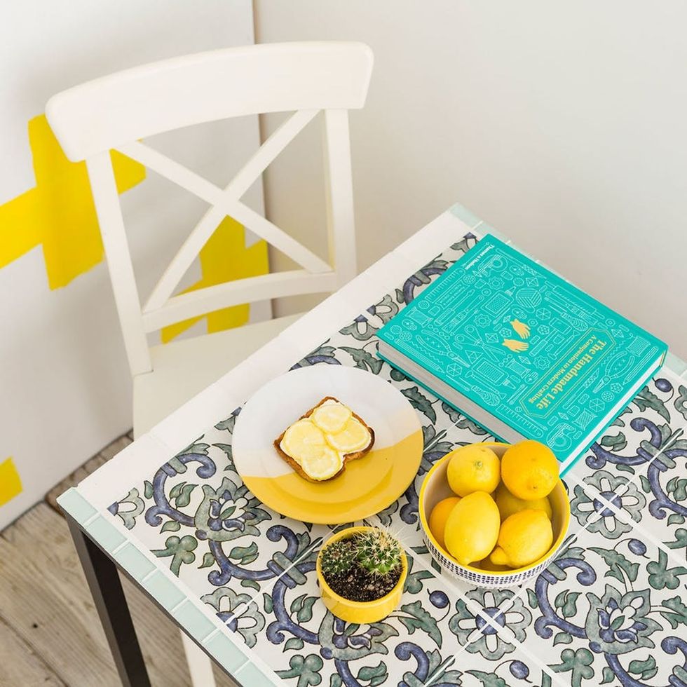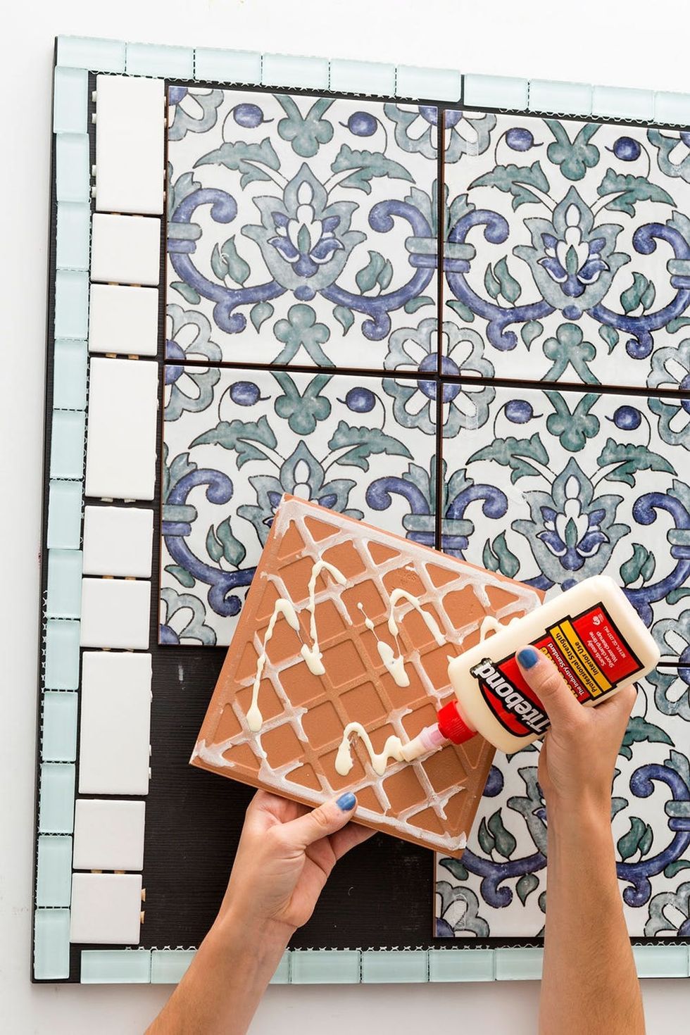 Upgrade your basic IKEA table for spring with mixed tiles.