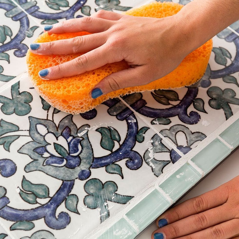 - Wait 20 minutes, and then use a damp sponge to wipe up the excess grout.