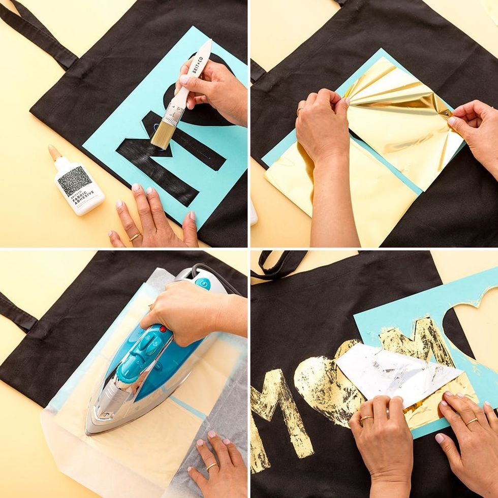 Mother’s Day is rapidly approaching! This year, why not mix it up and make something special to show your mom how much you appreciate her? With the hustle and bustle of everyday life, it can be difficult to muster the motivation to create. I feel you! That’s why I’m a BIG fan of our new Brit + Co DIY Kits (available exclusively at Target). These kits are the real deal. Seriously! They’re easy, accessible, and even have super cute B+C-branded tools. So, for this Mother’s Day grab a Gold Foil Tote Kit and make a custom bag for the number one woman in your life. Read on for some tips, tricks, and easy embellishments to have this gift done in no time.