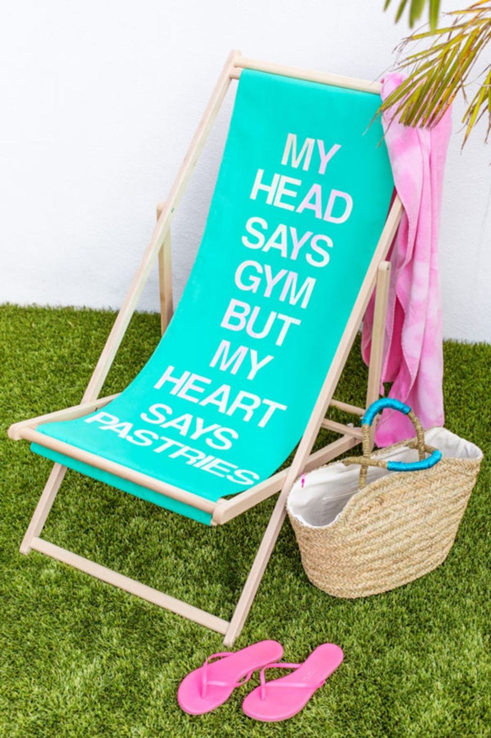 4. DIY Sling Beach Chair Makeover: This is a GREAT way to freshen up a mismatched collection of beach chairs, or give your old faithful a colorful new look. Who knew those office-supply-store sticker letters could help make such a stylish piece? (via Studio DIY)