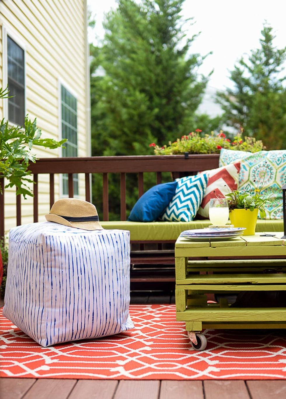 6. West Elm-Inspired DIY Striped Pouf: This stripe-happy piece was made for a fraction of the cost of the original. It’s the perfect addition to an outdoor couch situation or for when you need an extra spot to sit. (via Place Of My Taste)