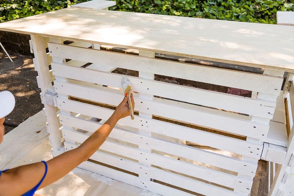 Not all pallets are beautiful (no offense, pallets), so a quick coat of white paint will make everything look brighter and cleaner.