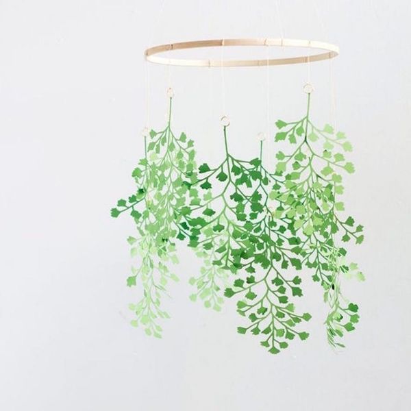 5. DIY Paper Maidenhair Fern Mobile: Create the perfect hanging garden by suspending this paper fern mobile near any window or in an open space that seems ideal. Amp it up by adding colored paper flowers to accent any color scheme in the room. (via The House That Lars Built)