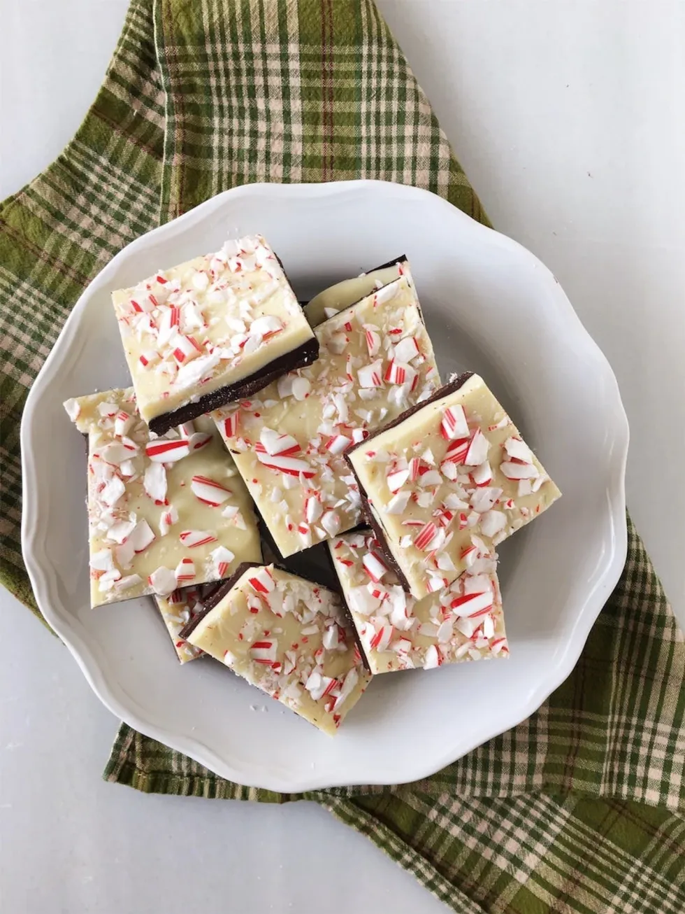 8. Sprinkle the crushed peppermint on top and lightly press into the white chocolate.