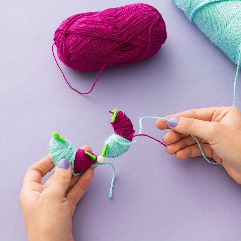 Go crazy with the pom-pom maker — try wrapping two colors or more to create a multi-colored pom.