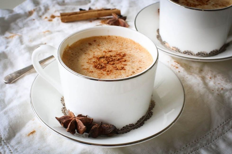 It’s pretty hard to top that fall feeling when the barista hands over your first PSL of the season, but there’s also nothing like spending a chilly Saturday morning right at home. That’s why we set out to combine the best of both worlds with a pumpkin chai latte recipe that gives you all those cozy vibes — without having to change out of your pjs. It’s spicy, sweet, creamy, and lightly laced with that earthy pumpkin flavor. There’s no special equipment required, and it only takes a few simple, clean ingredients — no mystery syrups or sweeteners here. Best of all, you can enjoy it while binging your fave fall TV in bed or whipping up a special weekend breakfast.