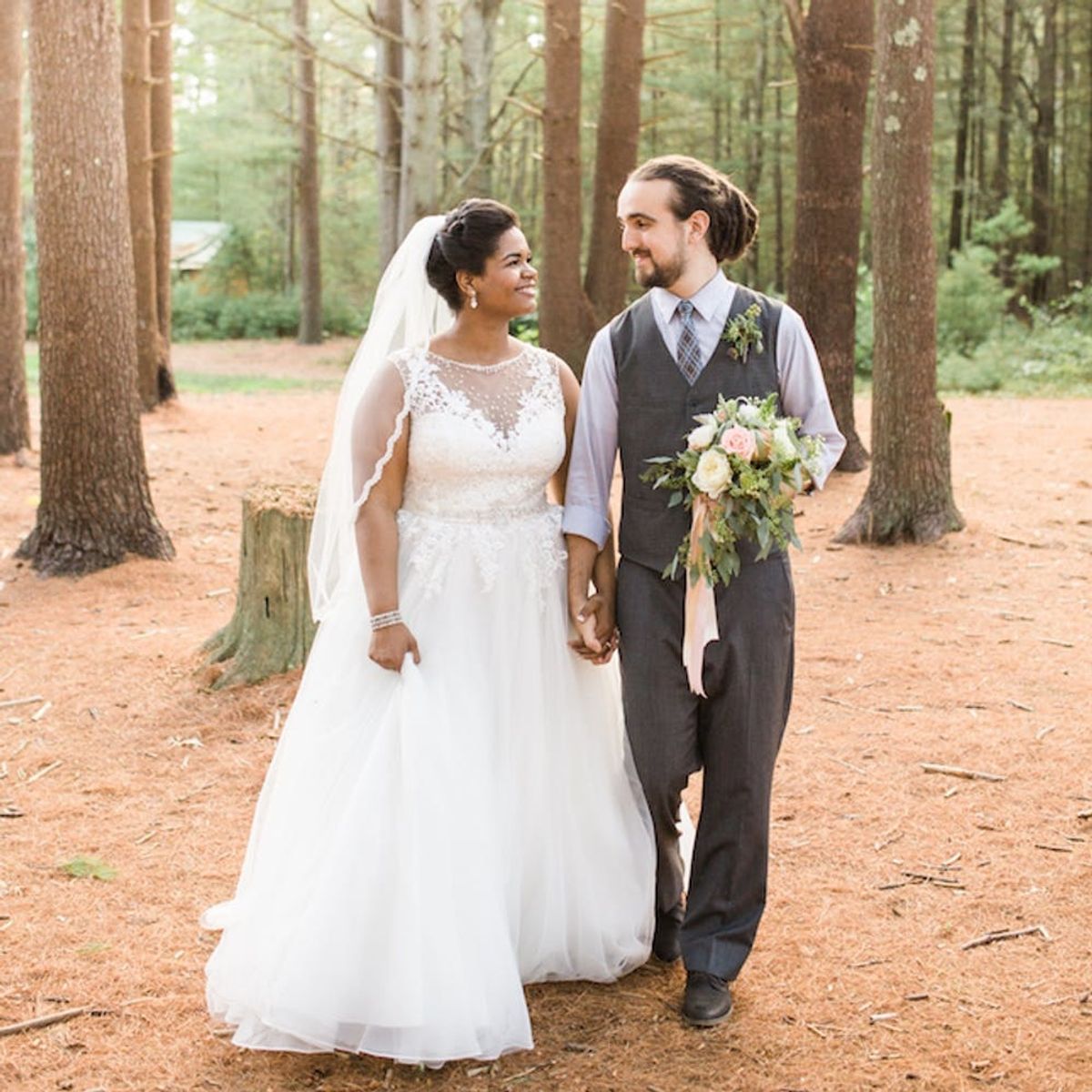 College sweethearts, proud New Yorkers and crazy talented DIYers: That aptly describes recently wed couple Luz and Gabe in a nutshell. And as far as the “talented DIYer” claim goes, we have the photos to prove it. For their wedding in Rhode Island, the couple channeled a forest-y camp vibe with lots of DIYed accents in elegant white and pops of pastel to liven things up, and the results were just dreamy. Trust us, you’ll want to file away these DIY wedding ideas that hit all the right rustic notes.