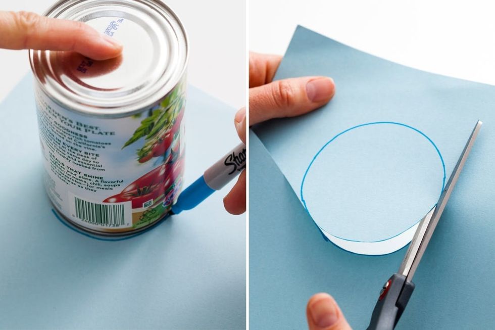 1. To make your stencil, trace a circle on your card stock—we traced ours using canned food—then cut it out.