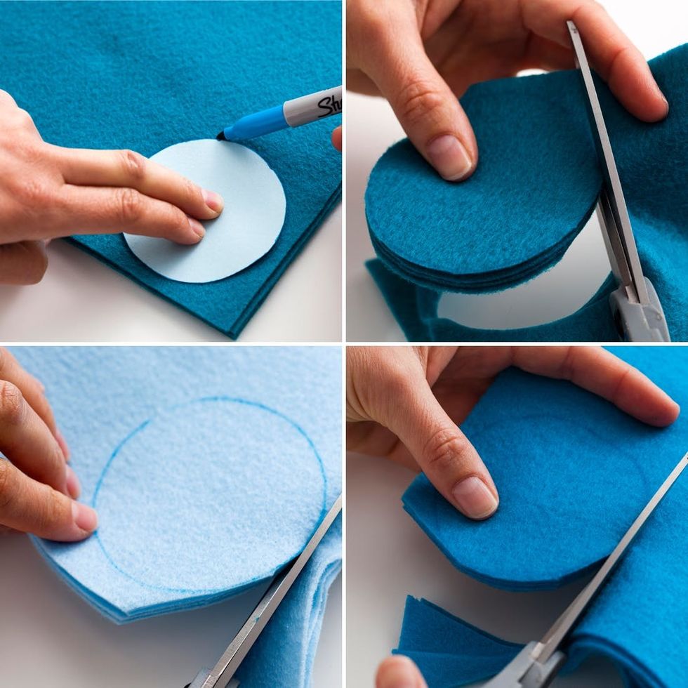 2. Stack four sheets of the same color felt, then draw a circle on the stack using your stencil and cut the entire stack.