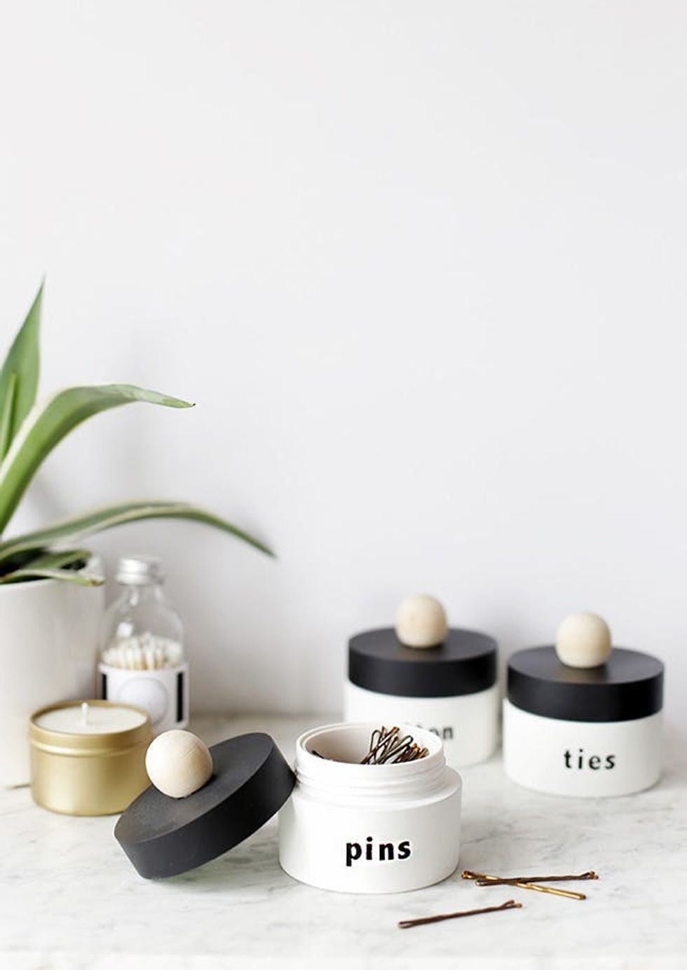 Labeled Storage: An organized bathroom is a happy bathroom. And something about containers with pretty labels just makes things like cotton balls and Q-tips way more exciting. (via The Merrythought)