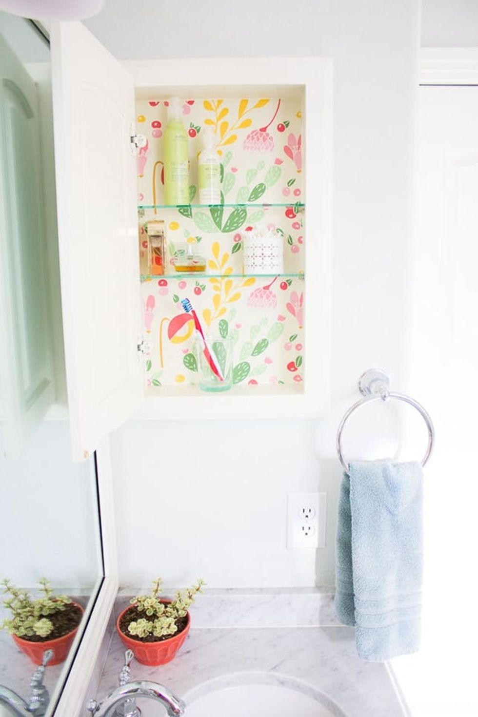 Upgraded Vanity: Until you're ready to do a major bathroom overhaul with lots of built-in shelving and cupboards, upgrading your medicine cabinet is the way to go. Use it to store everything from hair products to makeup and extra washcloths. (via Design Improvised)