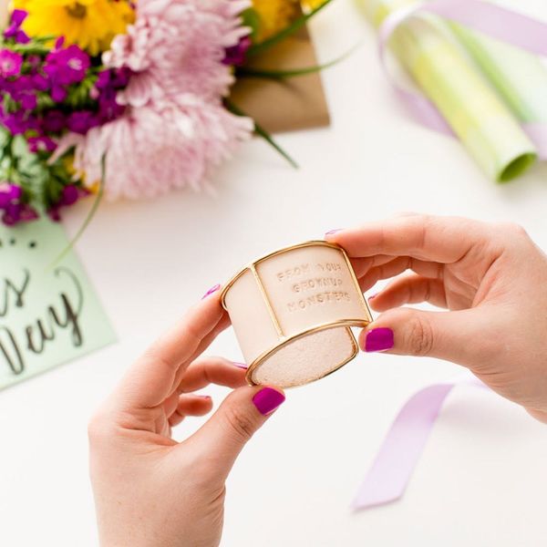 Mom’s gotten all the flowers. She’s had every style of brunch. She’s hung your drawings up on the fridge at every age. But what she might not be expecting this year is a DIY Mother’s Day gift that is both on trend and made by her favorite person — her kid. Surpass all her gift expectations this year with this stylish and easy-to-make stamped leather cuff bracelet. Scroll on down to see how we put the perfect amount of personalization into this classic, wear-with-everything accessory.