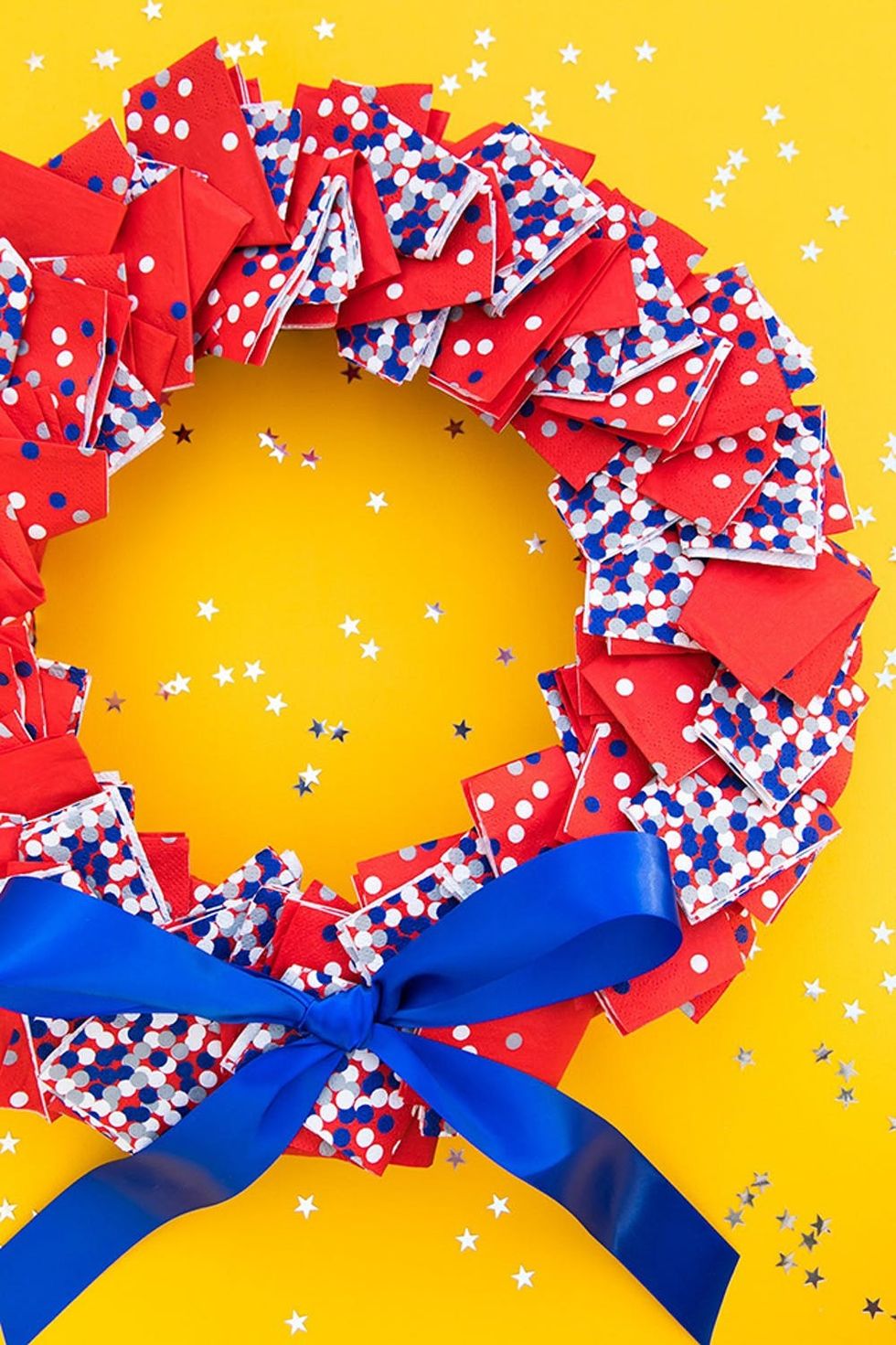 18. Patriotic Napkin Wreath: Finally! A good use for all the festive napkins you snag but never end up actually using. Just don’t place it where the wind will carry it off with a strong gust. (via Sarah Hearts)