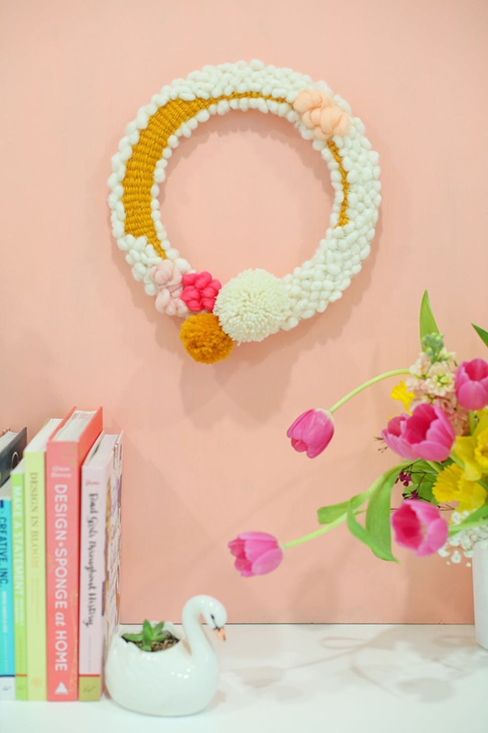5. Felt Flower Wreath: Get tickled pink with this floral number. With just a little felt and a wood base, it’s an easy DIY that will give your door a girly aura.