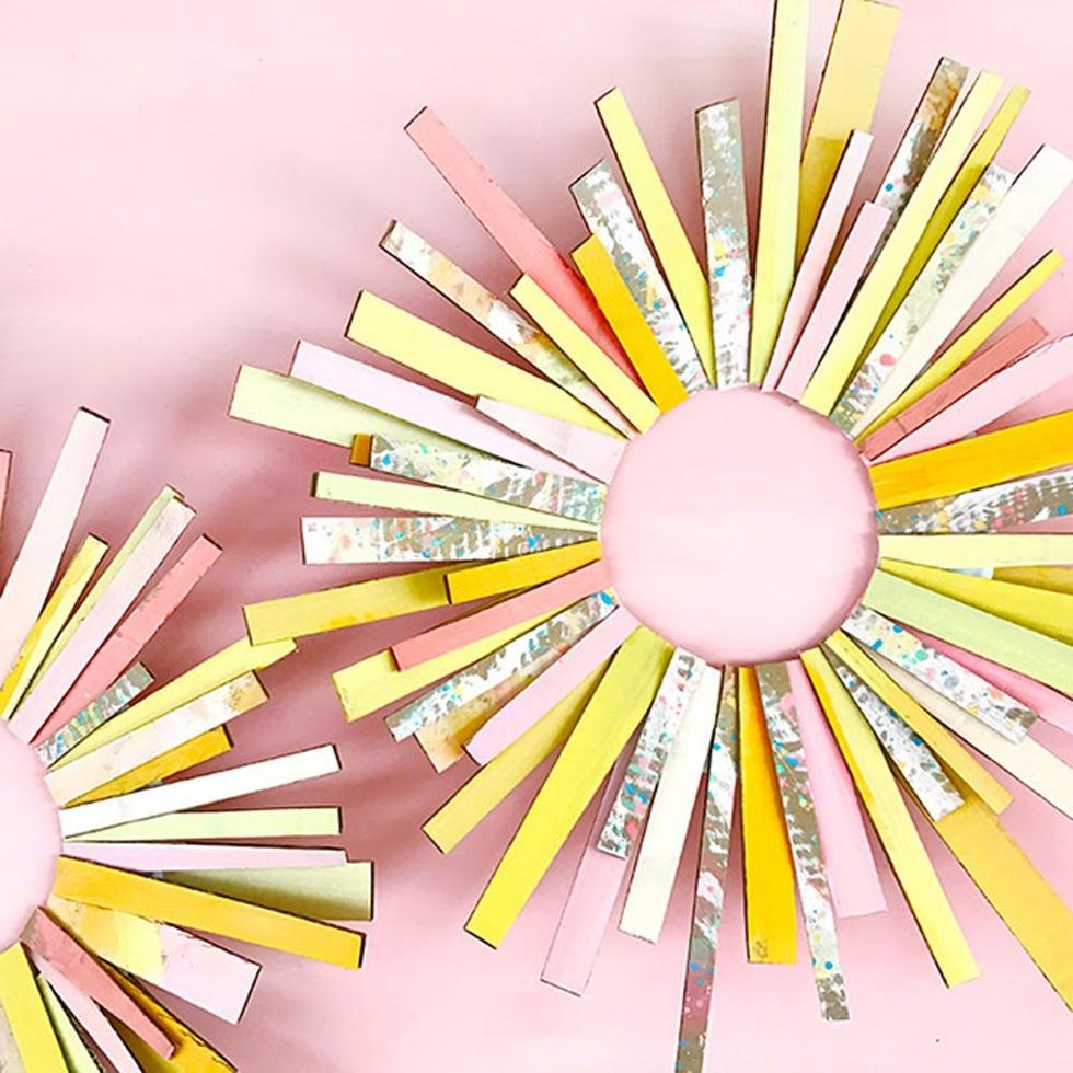 26. DIY Sun Ray Wreath: The sunburst design is never going out of style, and when painted in bright colors, they look just like the sun! (via Handmade Charlotte)