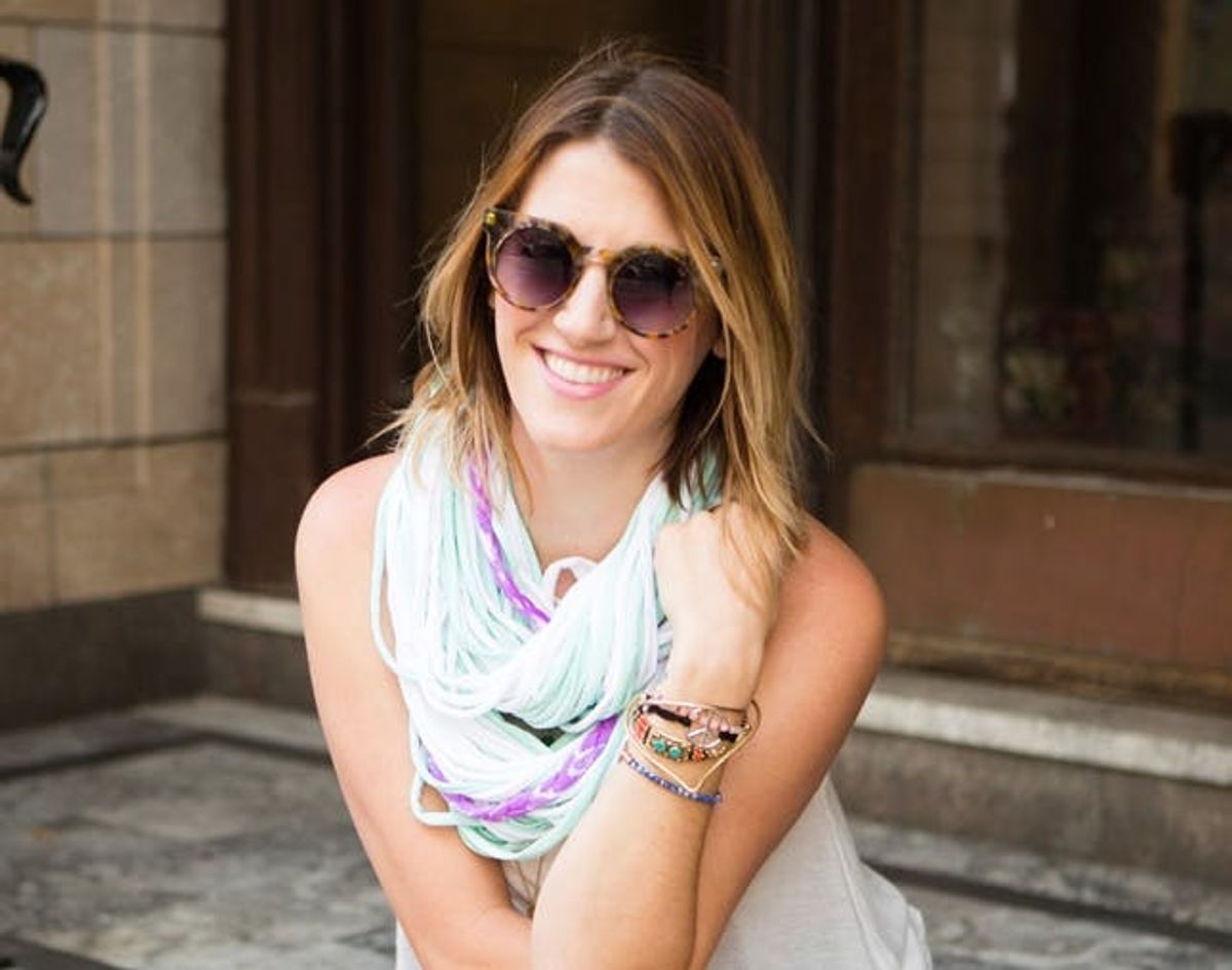 Nothing beats the versatility of a classic white cotton t-shirt. You can pair with jeans on the weekend or a high-waisted black pencil skirt for the office, or toss an oversized tee over a swimsuit for a day at the beach. But you know what else is great about a t-shirt? It makes a great DIY material! For this project, in partnership with Cotton, we decided to turn two white cotton t-shirts into two totally different scarves. Check out the video above to see each of these pieces come to life, and follow along for the in-depth tutorial.