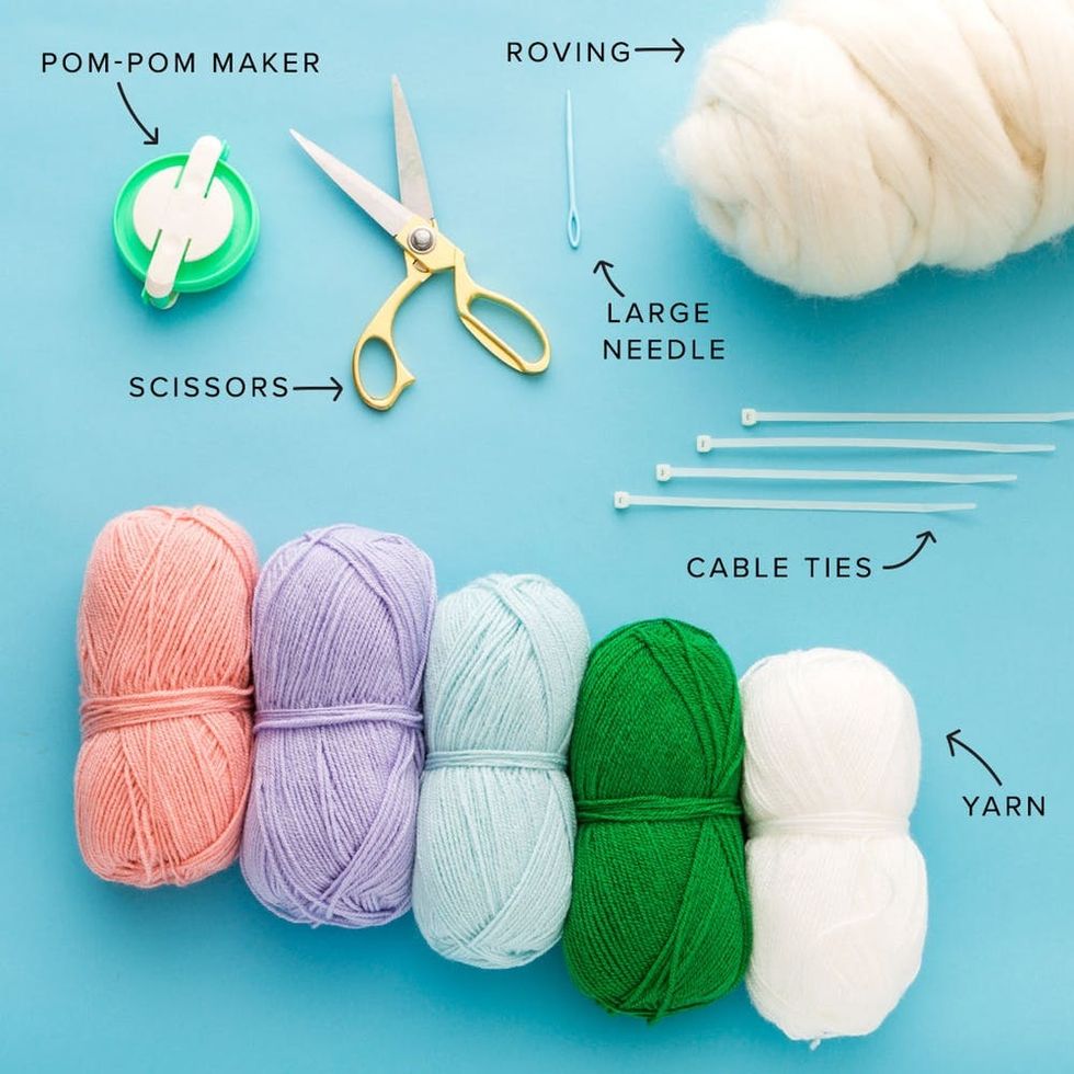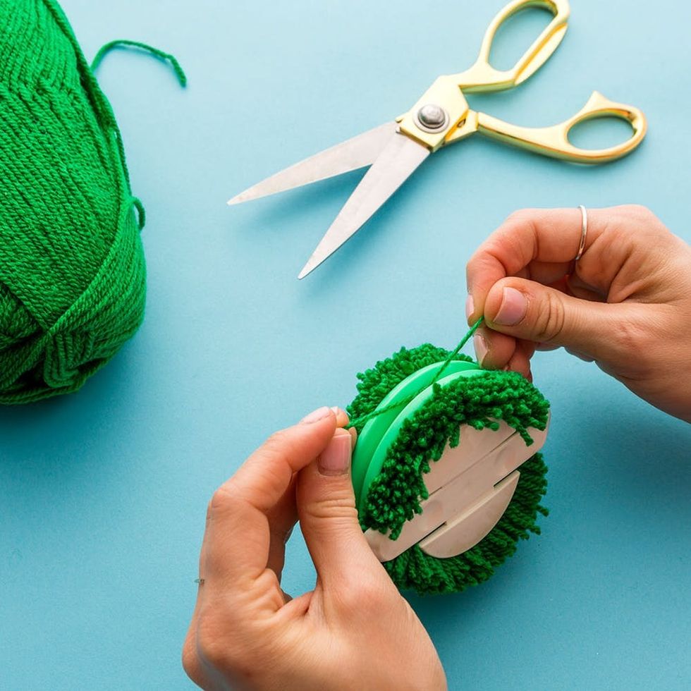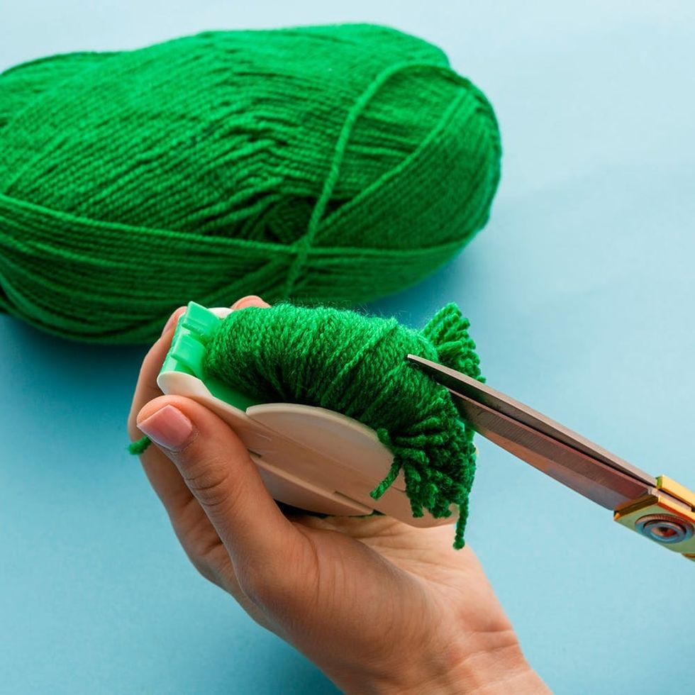 To free your new fringy friend, pull open both pairs of the arms and pull apart each side of the maker. Give your pom a little haircut to turn him into the perfect fuzzball or leave him shaggy for some extra texture. After you make a few more poms, you’ll be ready to make a garland.