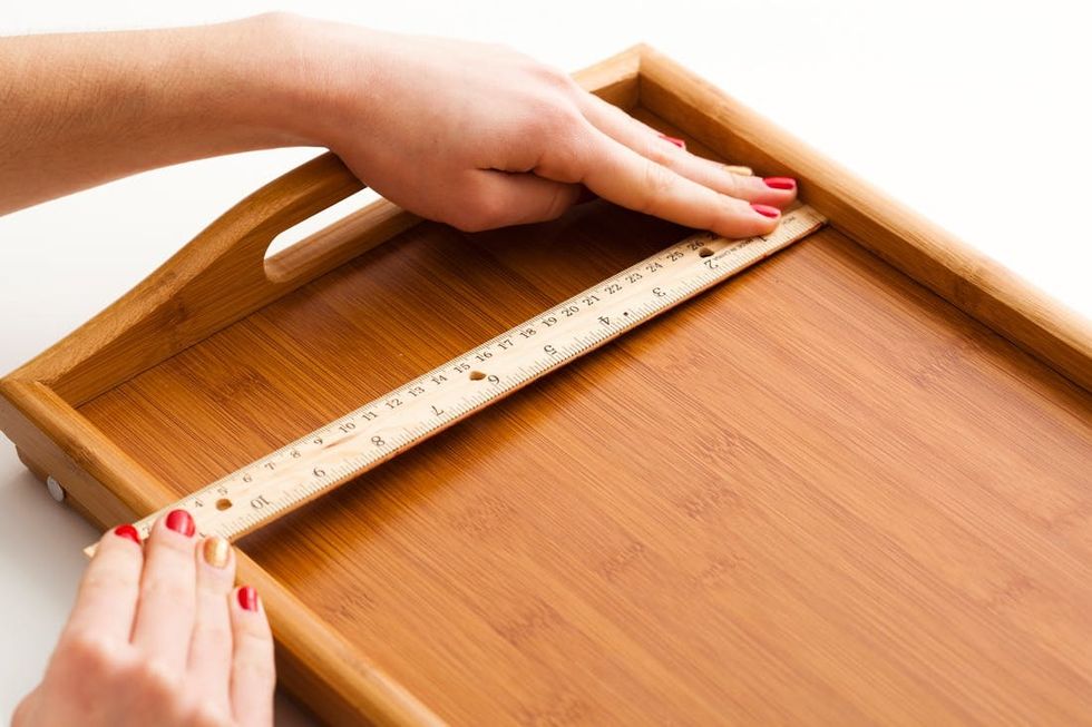 Our tray was 10 1/2 inches tall. We cut strips at various widths to create a fun striped pattern.