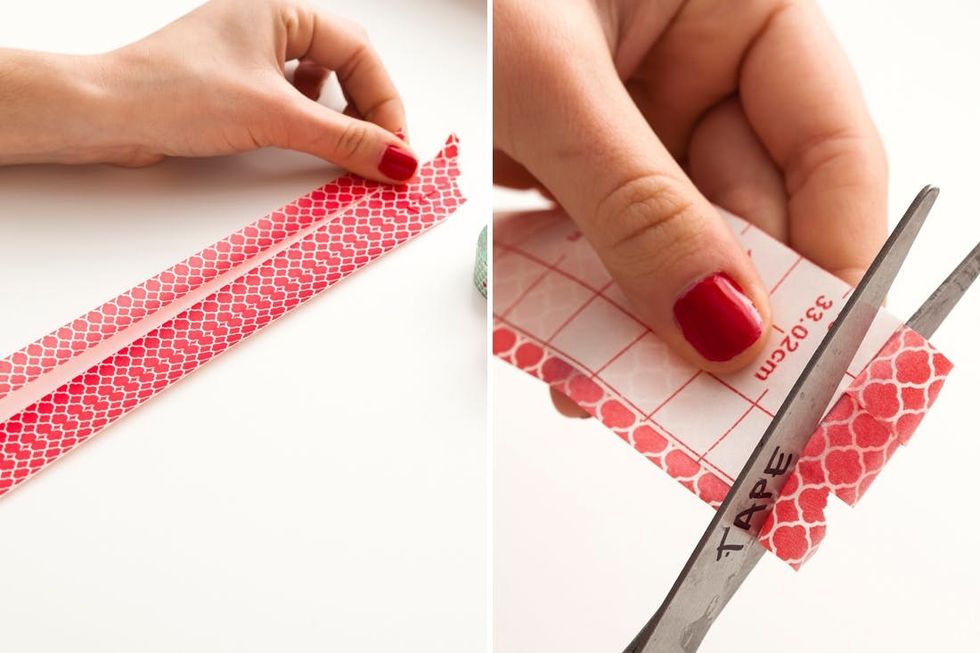 We added washi tape to the white pieces, but feel free to play around with lots of different colors and patterns. (And yes, we have scissors designated for tape!)