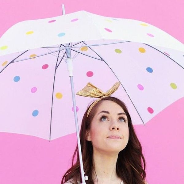 2. DIY Polka Dot Umbrella: Transform a boring old solid-color umbrella into polka-dot perfection. (via Refinery29)
