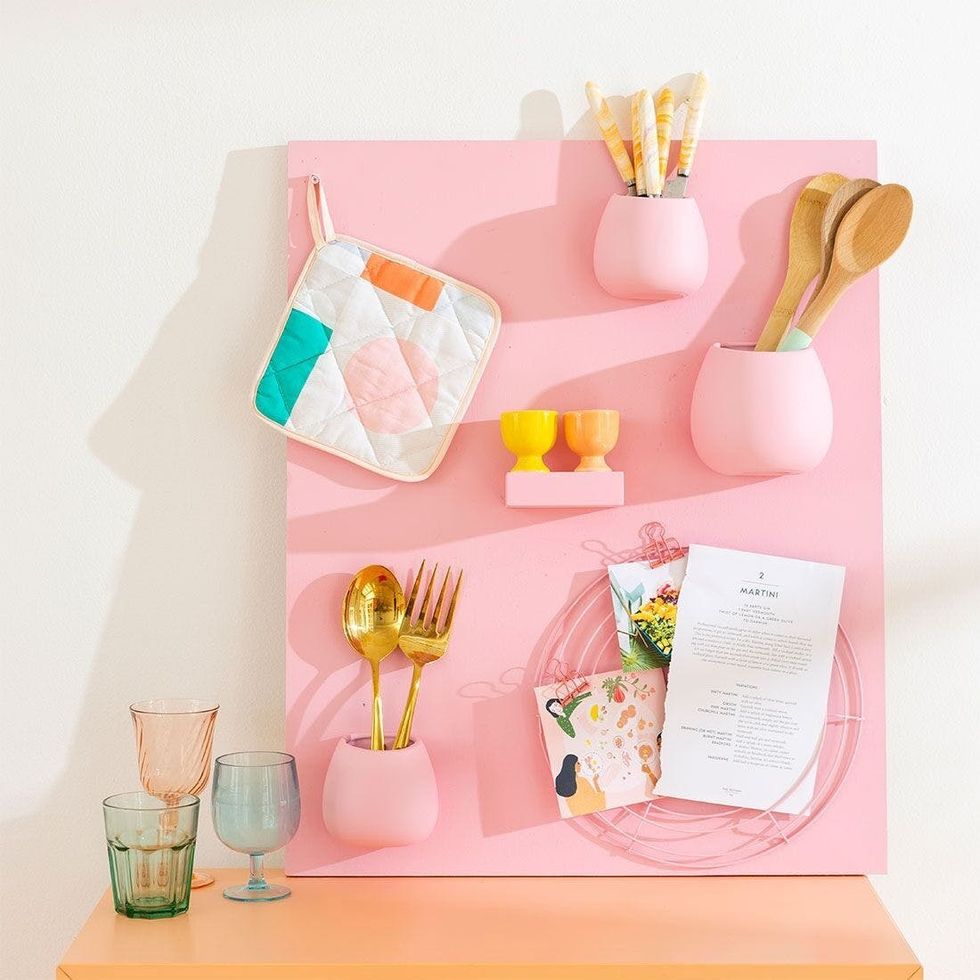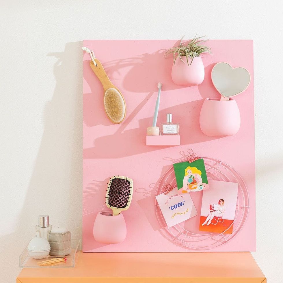 Spacing-saving and decluttering hacks are kinda our jam. Because who doesn't want more room for the things you love? If you're looking to add a little more order to your home, this DIY wall organizer requires minimal effort and only needs a few simple items. With it, your study, vanity, or kitchen will look tidier than ever — and pretty too! Scroll through to see how to get it done.