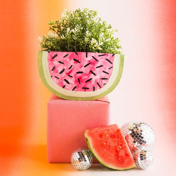 - Use green, white, red, and black paint to turn your planter into a watermelon slice!