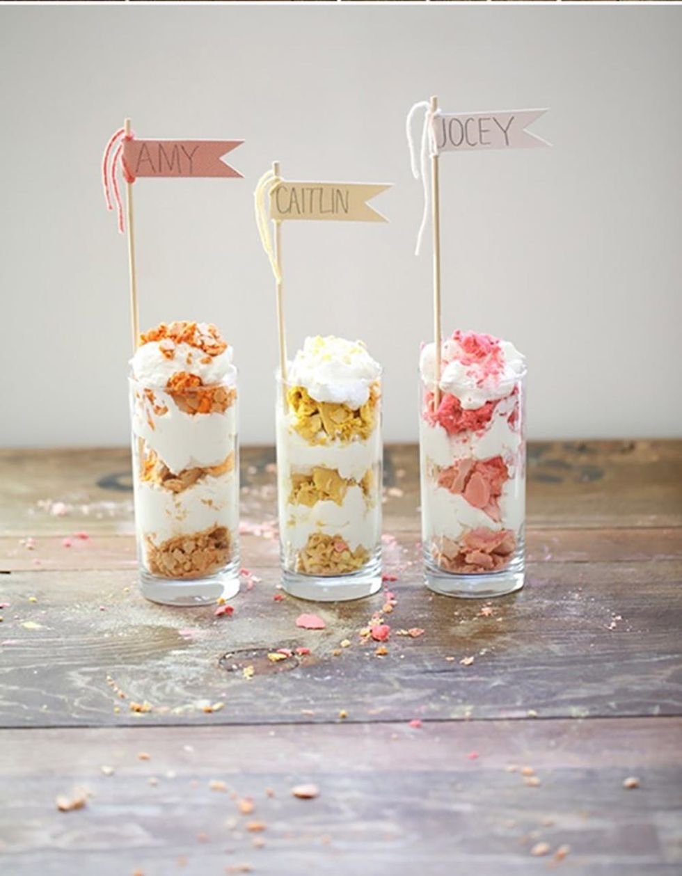 7. DIY Ombre Desert Place Cards: For a handmade wedding, these cheery flags strike just the right note. Pop ’em in an amuse-bouche for guests to enjoy, or give ’em a pre-dinner preview of the dessert table. (via Wedding Chicks)