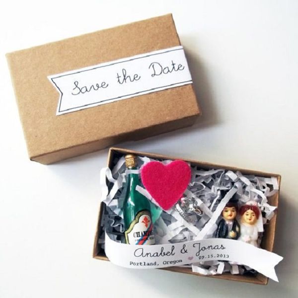23. Mini Box: We all love to receive packages in the mail. Get your guests excited with a tiny box full of adorable trinkets and things. (via Michie May)