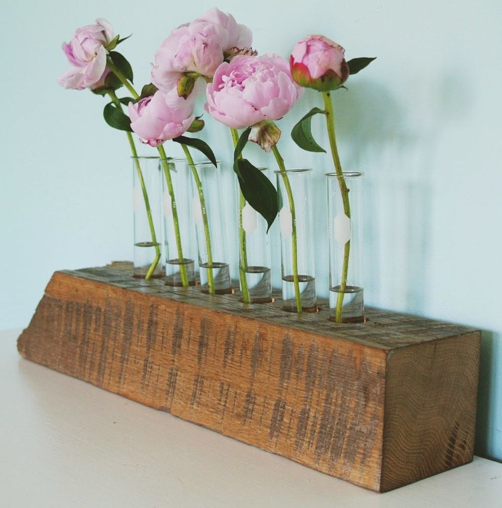 How gorgeous is the juxtaposition between this rustic wooden vase and the soft petals rising up from it? Yes, you will need a power drill to bore holes into your block of wood, as well as test tubes, which make for a gloriously unexpected alternative to the bud vase. Click above for the full how-to.