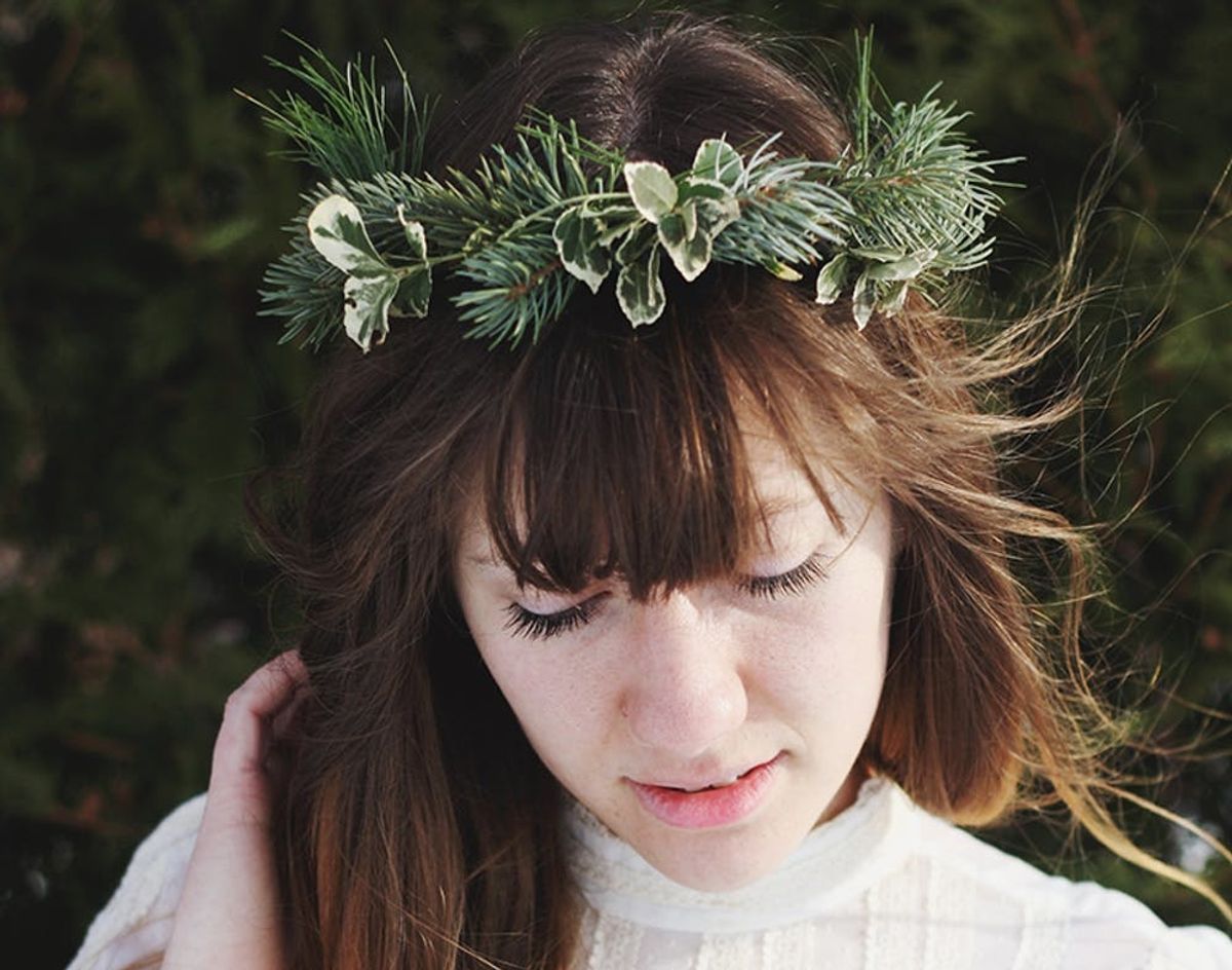 8. Evergreen Crown: You’ll be queen of the forest with this earthy headwear. If you happen to have a Christmas tree at home, snip off a few branches and twist them together to create this wreath that will look just as good as it smells. (via The Merry Thought)