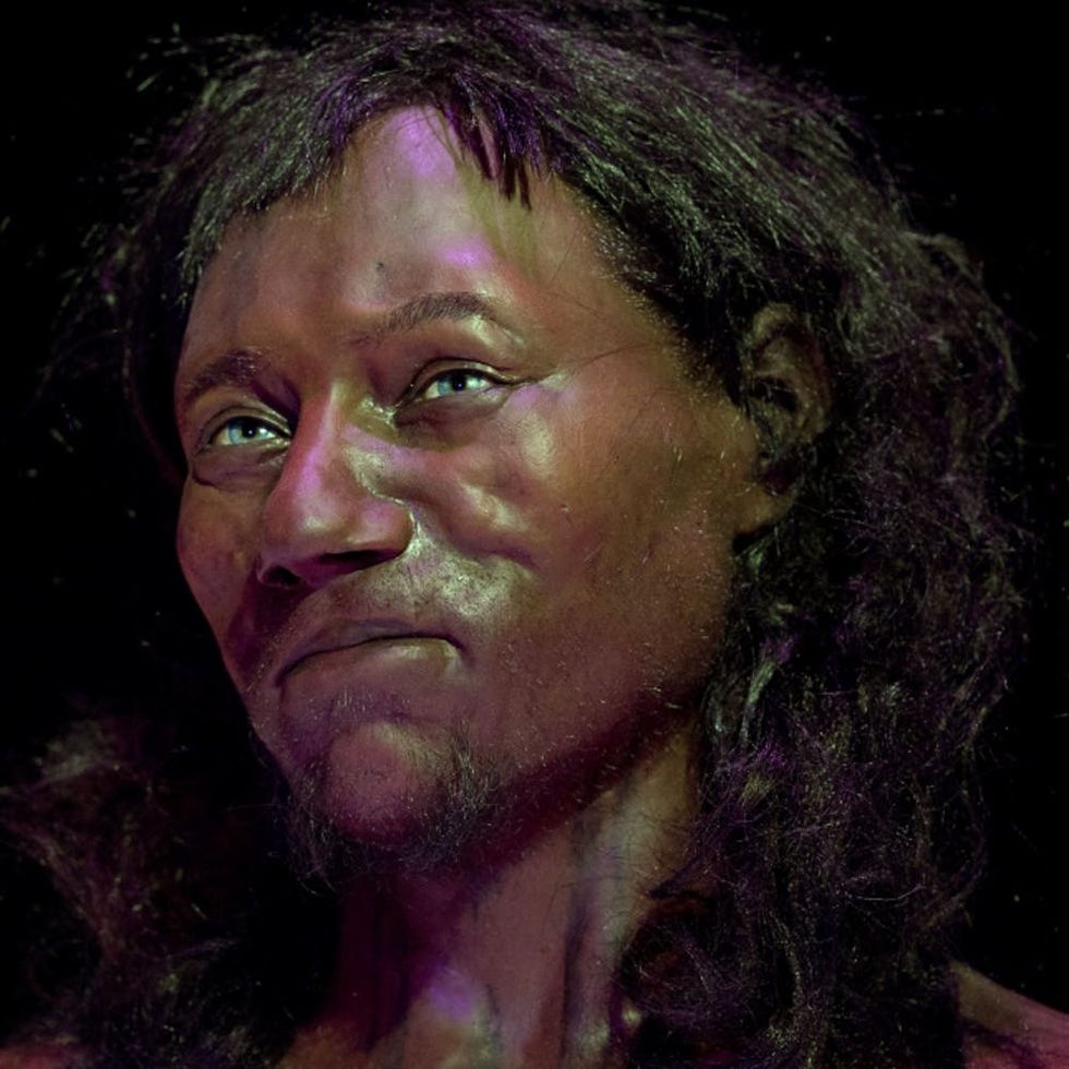 As part of the project, researchers constructed a bust of what Cheddar Man might have looked like. The statue has blue eyes, dark brown hair, and dark brown skin.