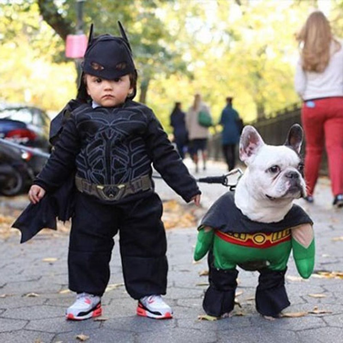 10. Batman and Robin: The dynamic duo is back, and they’re cuter than ever! This little guy is ready to fight crime with his trusted sidekick, who can smell crime and city grime a mile away. Make it a family costume and have everyone dress up as superheroes. (via HONY)