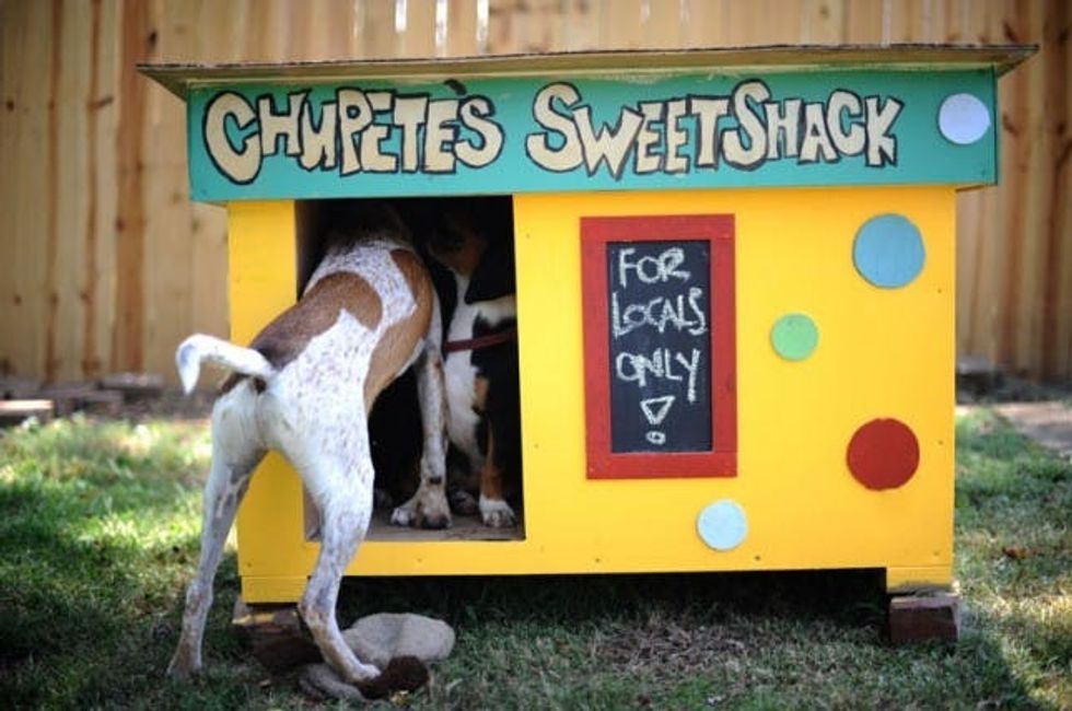 2. Build a Really Awesome Dog House: This is definitely a weekend project, and you probably need a pretty well-trained pup to make sure it stays in one piece. We love that this looks like a pop-up food cart.