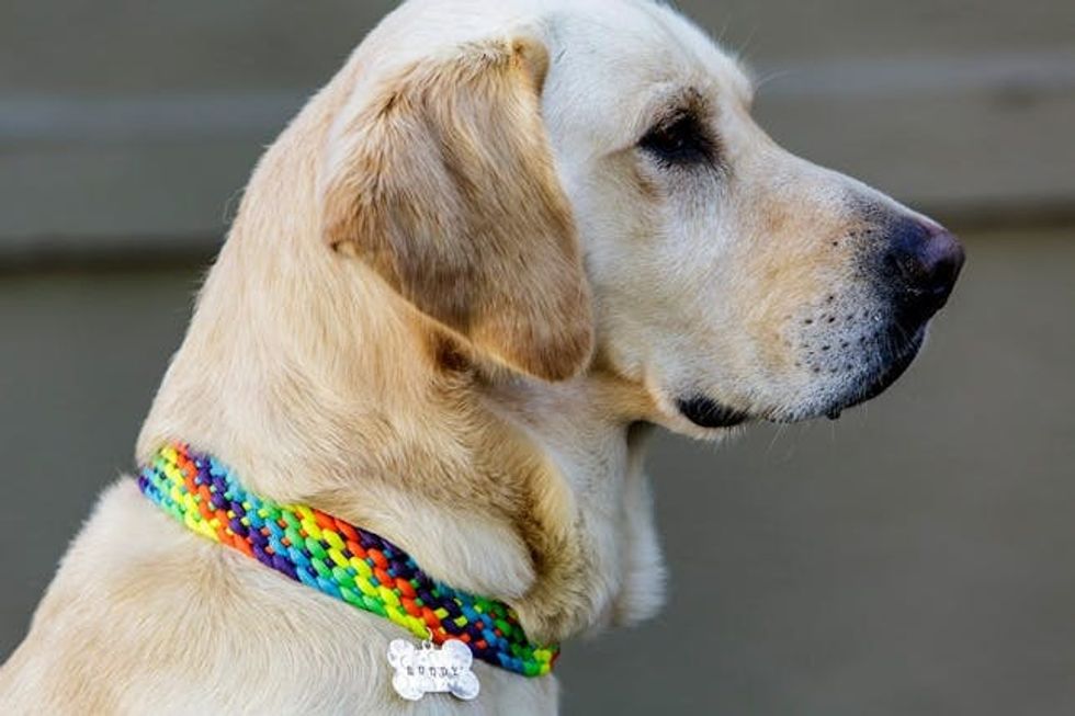 3. Create a Custom Collar: Next time you decide to make a statement necklace or headband for yourself, why not consider making a bit of bling for your pup? This rainbow paracord collar is colorful, sturdy, and you know what else? Fetching ;)