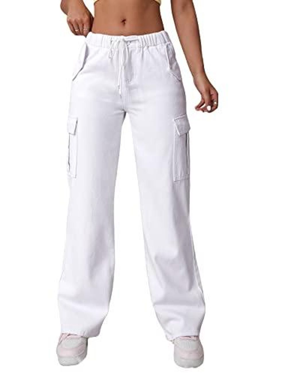 The WDIRARA Drawstring Waist Cargo Jeans are a comfortable and practical choice for any casual occasion. The multiple pockets offer style and function, making them perfect for everyday wear. The drawstring waist allows for a customizable fit, while the denim material provides a classic and timeless look.