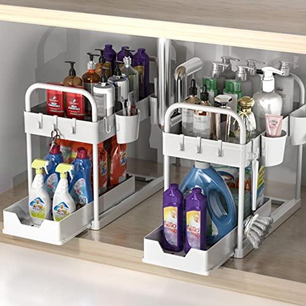 These undersink organizers make the under skink chaos somewhat bearable. With so many cleaning agents, its impossible to really keep everything calm and serene without this tool.