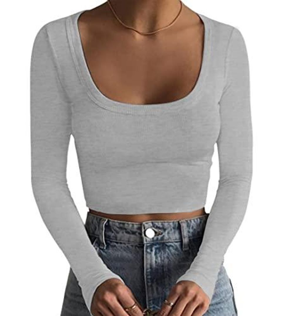 For a winter basic that you'll wear all the time, this cropped long sleeve top is an essential. With several colors and a cute scoop neckline, this tee will instantly become a go-to for layering under all your favorite cold weather staples.
